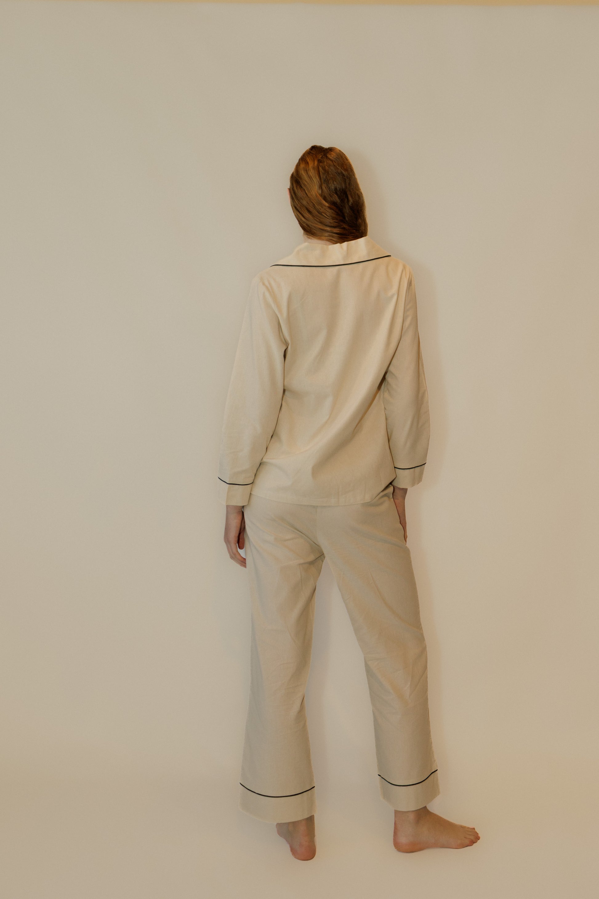 Elevate your at-home moments with the Beige Long Sleeve Set, crafted in 100% breathable cotton. Designed for women who value elegance as much as comfort, this set transitions seamlessly from quiet mornings to cherished evenings at home.